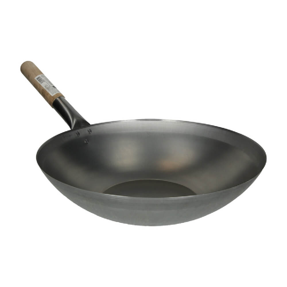 Wok 39 cm z lesenim ročajem, je nepogrešljiv pripomoček za vse ljubitelje azijske in moderne kuhinje. Zaradi svoje značilne oblike omogoča hitro segrevanje in enakomerno razporeditev toplote, kar je ključno za učinkovito praženje pri visokih temperaturah.